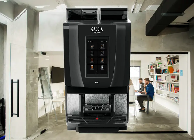 La Gaggia G 50 es una máquina de café automática profesional, compacta y potente, diseñada para ofrecer una excelente calidad en taza en oficinas y pequeños negocios. Su pantalla táctil de 7”, su versatilidad en bebidas y su diseño de solo 56 cm de altura la convierten en una solución práctica, elegante y eficiente.